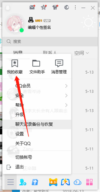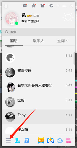 1、登录电脑QQ后点击主界面底部的菜单图标